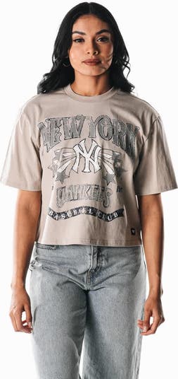 Add some vintage flair to your New York Yankees game day look with The Wild Collective Cropped Vintage Boxy T-Shirt. With distressed screen print graphics, this tee offers a lived-in aesthetic that suits your personal style. Plus, the cropped length adds a touch of modern flair to this comfy cotton New York Yankees tee.