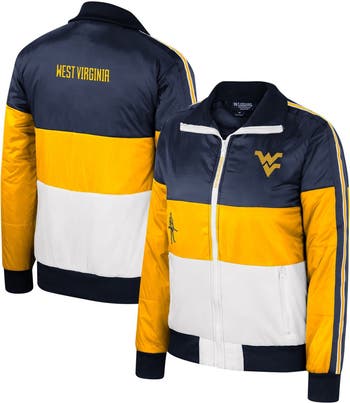 On cooler days, draw attention to your West Virginia Mountaineers spirit by sporting this Puffer full-zip jacket from The Wild Collective. Its color-block design features the West Virginia Mountaineers logo on the front and the team name displayed across the back. Zippered pockets keep small items secure when you're on the go.