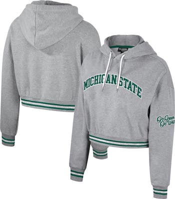 Women's The Wild Collective Heather Gray Michigan State Spartans Cropped Shimmer Pullover Hoodie