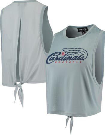 The Women's The Wild Collective Light Blue St. Louis Cardinals Open Back Twist-Tie Tank Top is the perfect way to show your support for the St. Louis Cardinals. With its screen print graphics with puffed detail and twist-tie mesh back, this tank top is both stylish and comfortable. Made from a polyester and spandex blend, this tank top is perfect for any occasion, whether you're cheering on the Cardinals at the game or just relaxing at home. Show your Cardinals pride with this officially licensed tank top from The Wild Collective.
