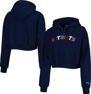 Women's The Wild Collective Navy New England Patriots Cropped Pullover Hoodie