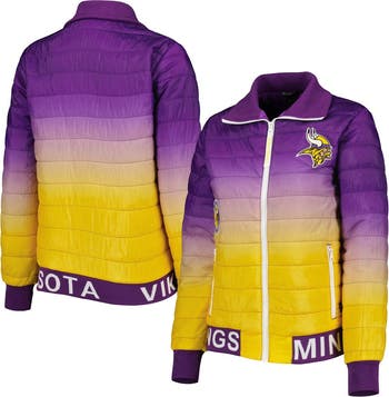 On colder game days, rep the Minnesota Vikings in style by sporting this Color Block full-zip puffer jacket from The Wild Collective. It features an eye-catching ombre design and multiple types of Minnesota Vikings graphics. Zippered pockets also keep essentials secure and easily accessible.