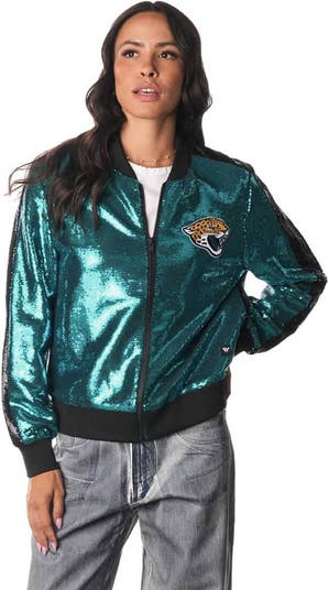 Add some fierce style to your Jacksonville Jaguars wardrobe with this The Wild Collective Sequin Full-Zip Bomber Jacket. This eye-catching bomber jacket is perfect for mild temperatures, keeping you comfortable while you cheer on the Jacksonville Jaguars. With sparkly sequins all over and sublimated team graphics, this jacket lets you rep your team with a touch of glam.