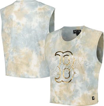 The Women's The Wild Collective White Boston Red Sox Washed Muscle Tank Top is the perfect way to show your support for the Boston Red Sox. With its unfinished, cropped hem and screen print graphics with foil detail, this tank top is sure to turn heads. The tie-dye design may vary with each tank, making each one unique. Made from 100% cotton, this tank top is comfortable and breathable, perfect for a day at the ballpark or cheering on the Red Sox from home.