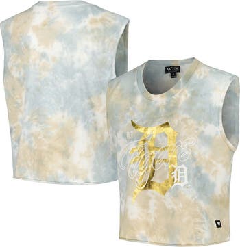 The Women's The Wild Collective White Detroit Tigers Washed Muscle Tank Top is the perfect way to show your support for the Detroit Tigers. This stylish tank top features a unique tie-dye design that may vary with each tank, making it one-of-a-kind. The screen print graphics with foil detail add a touch of flair, while the unfinished, cropped hem gives it a modern edge. Made from soft cotton, this tank top is comfortable to wear all day long. Whether you're cheering on the Tigers at the ballpark or relaxing at home, this tank top is sure to become a favorite.