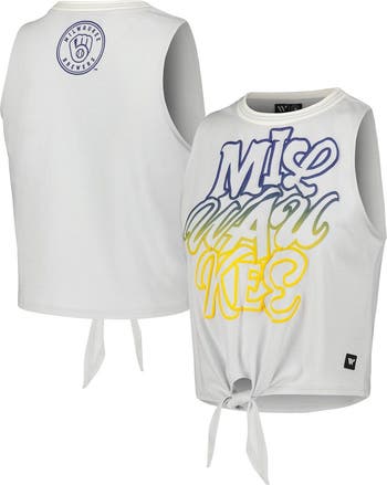 Women's The Wild Collective White Milwaukee Brewers Twisted Tie Front Tank Top