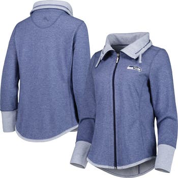 Women's Tommy Bahama Heathered College Navy Seattle Seahawks Sport Sun Fade Full-Zip Sweatshirt