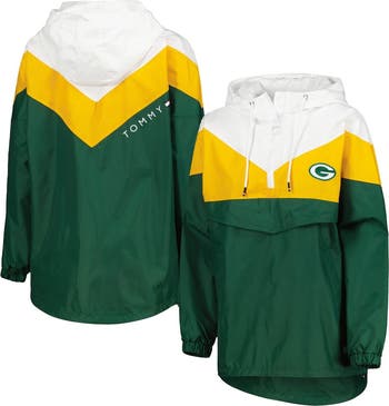 Women's Tommy Hilfiger White/Gold Green Bay Packers Staci Half-Zip Hoodie Windbreaker Jacket