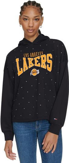 Layer up in chic fashion and pay a nod to your NBA squad with this Los Angeles Lakers Stella Cropped Pullover Hoodie. Tommy Jeans gives you a relaxed pullover that's sure to rest comfortably and offer a tasteful twist on a traditional pullover thanks to its cropped design. The team wordmark printed across the chest with sequin details is sure to catch the eye and send the message home that you're a true-blue Los Angeles Lakers supporter.