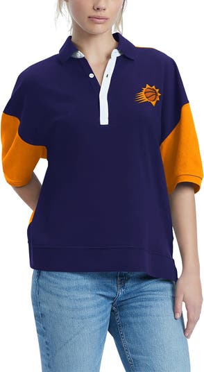 Embrace the spirit of the Phoenix Suns with the Women's Tommy Jeans Purple Phoenix Suns Taya Puff Sleeve Pique Polo Shirt. Its relaxed fit and high-low hem with side splits offer a comfortable and stylish fit. The embroidered team logo proudly adorns the left chest, showcasing your unwavering support for the Phoenix Suns. Whether you're cheering from the stands or representing your team off the court, this polo seamlessly blends style and team spirit, making it the perfect choice for any dedicated Phoenix Suns fan.