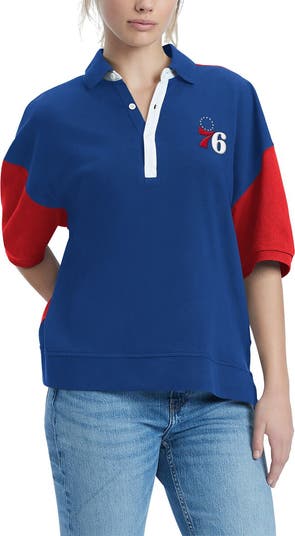 Women's Tommy Jeans Royal Philadelphia 76ers Taya Puff Sleeve Pique Polo Shirt