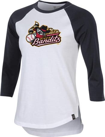 The Women's Under Armour Black/White Quad Cities River Bandits Three-Quarter Sleeve Performance Baseball T-Shirt is the perfect way to show your support for the Quad Cities River Bandits. Made from a comfortable cotton and polyester blend, this shirt features a crew neck, raglan sleeves, and a rounded droptail hem. Side slits provide added mobility, making it ideal for cheering on your team or relaxing at home. With bold Quad Cities River Bandits graphics, this shirt is sure to turn heads. Whether you're a lifelong fan or just getting started, this shirt is a must-have for any Quad Cities River Bandits enthusiast.