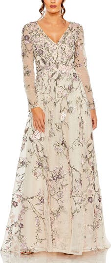 Women's V Neck Long Sleeve Embroidered A Line Gown