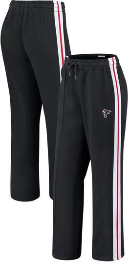 WEAR by Erin Andrews designed these Color-Block Straight Leg Pants for a comfy and stylish Atlanta Falcons look. Heavy tricot fabric drapes beautifully for comfortable movement, while the drawstring-adjustable waistband allows for a customized fit. Side stripes accentuating the embroidered Atlanta Falcons logo add a sporty finish to these fashion-forward pants.