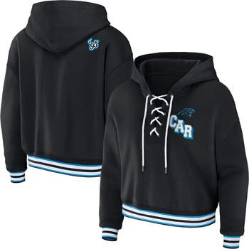 Women's WEAR by Erin Andrews Black Carolina Panthers Lace-Up Pullover Hoodie