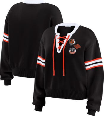 Women's WEAR by Erin Andrews Black Cincinnati Bengals Lace-Up Sweater