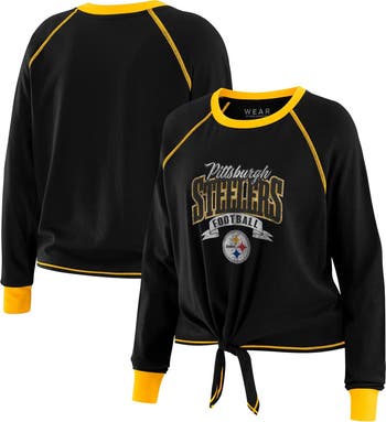Hit the stadium in style with this Pittsburgh Steelers Tie-Front Long Sleeve Top. This top from WEAR by Erin Andrews features a stylish tie front design, adding a touch of flair to your game day look. The soft and comfortable fabric ensures all-day wearability, making it a versatile addition to any Pittsburgh Steelers fan's wardrobe.