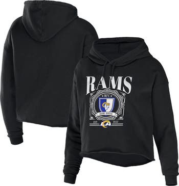 Women's WEAR by Erin Andrews Black Los Angeles Rams Cropped Sponge Fleece Pullover Hoodie