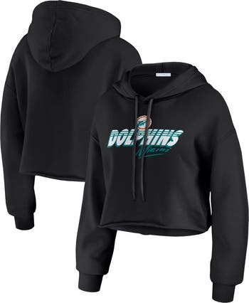 Women's WEAR by Erin Andrews Black Miami Dolphins Prime Cropped Pullover Hoodie