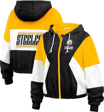 Women's WEAR by Erin Andrews Black Pittsburgh Steelers Color Block Full-Zip Windbreaker Jacket