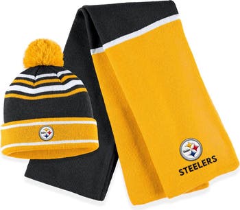Get warm in Pittsburgh Steelers style with this cuffed knit hat and scarf set from WEAR by Erin Andrews. It features embroidered team graphics and a bold two-tone design. Whether going to the stadium or enjoying a cold day outdoors, proudly rep the Pittsburgh Steelers with this set.