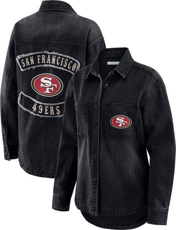 Women's WEAR by Erin Andrews Black San Francisco 49ers Washed Oversized Denim Full-Snap Shacket