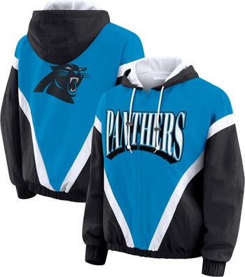 Women's WEAR by Erin Andrews Blue/Black Carolina Panthers Retro Crinkle Full-Zip Hoodie Windbreaker