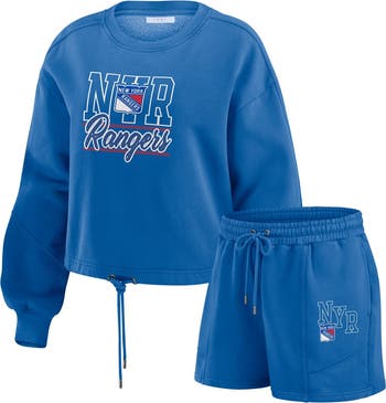Women's WEAR by Erin Andrews Blue New York Rangers Washed Fleece Sweatshirt & Shorts Lounge Set