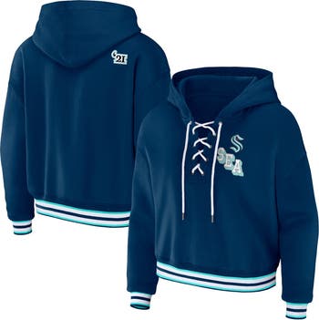 Women's WEAR by Erin Andrews Blue Seattle Kraken Lace-Up Pullover Hoodie