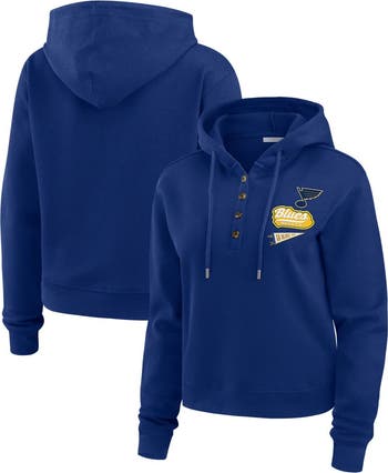 Cozy up for the next St. Louis Blues game with this WEAR by Erin Andrews Waffle-Knit Pullover Hoodie. This hoodie features a trendy dropped-shoulder design and a four-button placket, adding a touch of style to this cozy essential. A waffle-knit fabrication and rib-knit cuffs and waist hem deliver all the comfort and warmth you crave during chilly St. Louis Blues games.