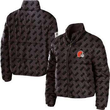 Women's WEAR by Erin Andrews Brown Cleveland Browns Puffer Full-Zip Cropped Jacket