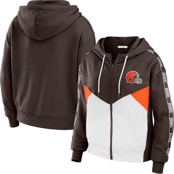 Women's WEAR by Erin Andrews Brown/White Cleveland Browns Color Block Light Weight Modest Crop Full-Zip Hoodie