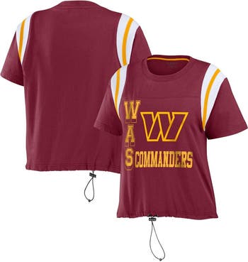 Women's WEAR by Erin Andrews Burgundy Washington Commanders Cinched Colorblock T-Shirt