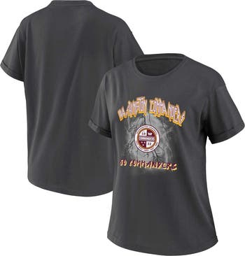 The Women's WEAR by Erin Andrews Charcoal Washington Commanders Boyfriend T-shirt is the perfect way to show your support for the Washington Commanders. Made from soft cotton, this comfortable tee features screen-printed graphics and cuffed sleeves for a stylish look. Whether you're cheering on the Commanders at the stadium or relaxing at home, this tee is sure to become a favorite.