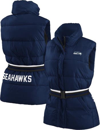 Women's WEAR by Erin Andrews College Navy Seattle Seahawks Full-Zip Puffer Vest with Belt