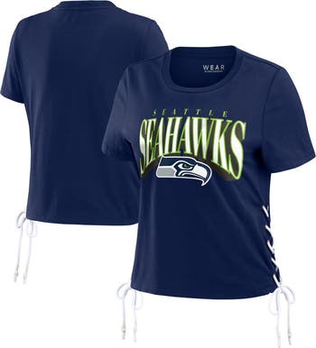 Women's WEAR by Erin Andrews College Navy Seattle Seahawks Lace Up Side Modest Cropped T-Shirt