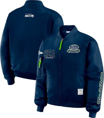 Women's WEAR by Erin Andrews College Navy Seattle Seahawks Patch Full-Zip Bomber Jacket