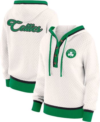 Women's WEAR by Erin Andrews Cream Boston Celtics Plus Size Hoodie Sweater