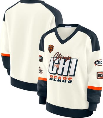 Women's WEAR by Erin Andrews Cream Chicago Bears Racing Crew V-Neck Sweatshirt