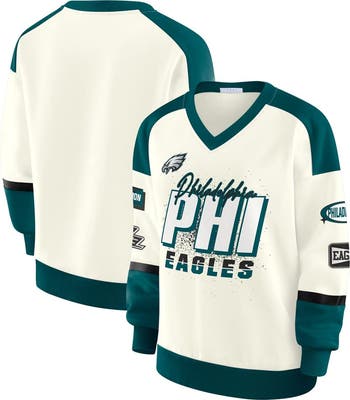 Women's WEAR by Erin Andrews Cream Philadelphia Eagles Racing Crew V-Neck Sweatshirt