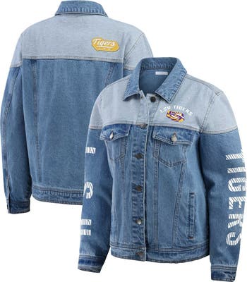 Show your LSU Tigers pride with this WEAR by Erin Andrews Sleeve Hit Colorblock Button-Down Denim Jacket. This stylish denim jacket features woven team appliques on the left chest and right shoulder for a touch of LSU Tigers flair. With screen-printed team wordmarks on the sleeves, this midweight jacket lets you show your team spirit while staying comfortable in moderate temperatures.