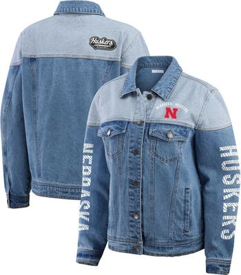Women's WEAR by Erin Andrews Denim Nebraska Huskers Sleeve Hit Colorblock Button-Down Denim Jacket