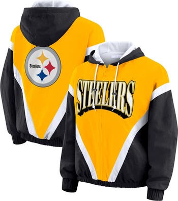 Women's WEAR by Erin Andrews Gold/Black Pittsburgh Steelers Retro Crinkle Full-Zip Hoodie Windbreaker