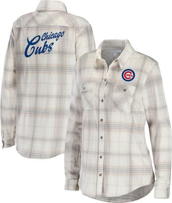 Women's WEAR by Erin Andrews Gray/Cream Chicago Cubs Flannel Button-Up Shirt