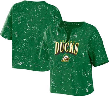Women's WEAR by Erin Andrews Green Oregon Ducks Bleach Wash Splatter Cropped Notch Neck T-Shirt