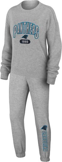 Women's WEAR by Erin Andrews Heather Gray Carolina Panthers Knit Long Sleeve Tri-Blend T-Shirt & Pants Sleep Set