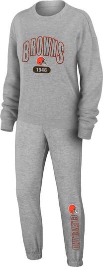 Women's WEAR by Erin Andrews Heather Gray Cleveland Browns Knit Long Sleeve Tri-Blend T-Shirt & Pants Sleep Set
