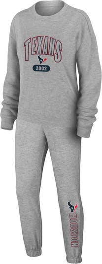 Women's WEAR by Erin Andrews Heather Gray Houston Texans Knit Long Sleeve Tri-Blend T-Shirt & Pants Sleep Set