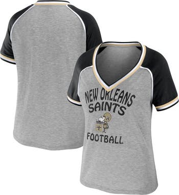 Women's WEAR by Erin Andrews Heather Gray New Orleans Saints Throwback Raglan V-Neck T-Shirt
