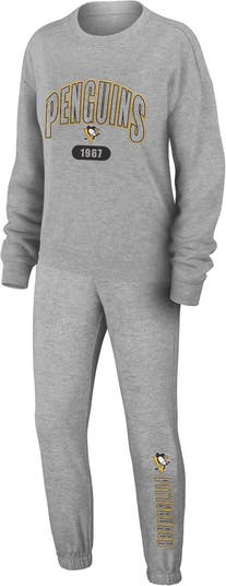 Women's WEAR by Erin Andrews Heather Gray Pittsburgh Penguins Knit Long Sleeve Tri-Blend T-Shirt & Pants Sleep Set